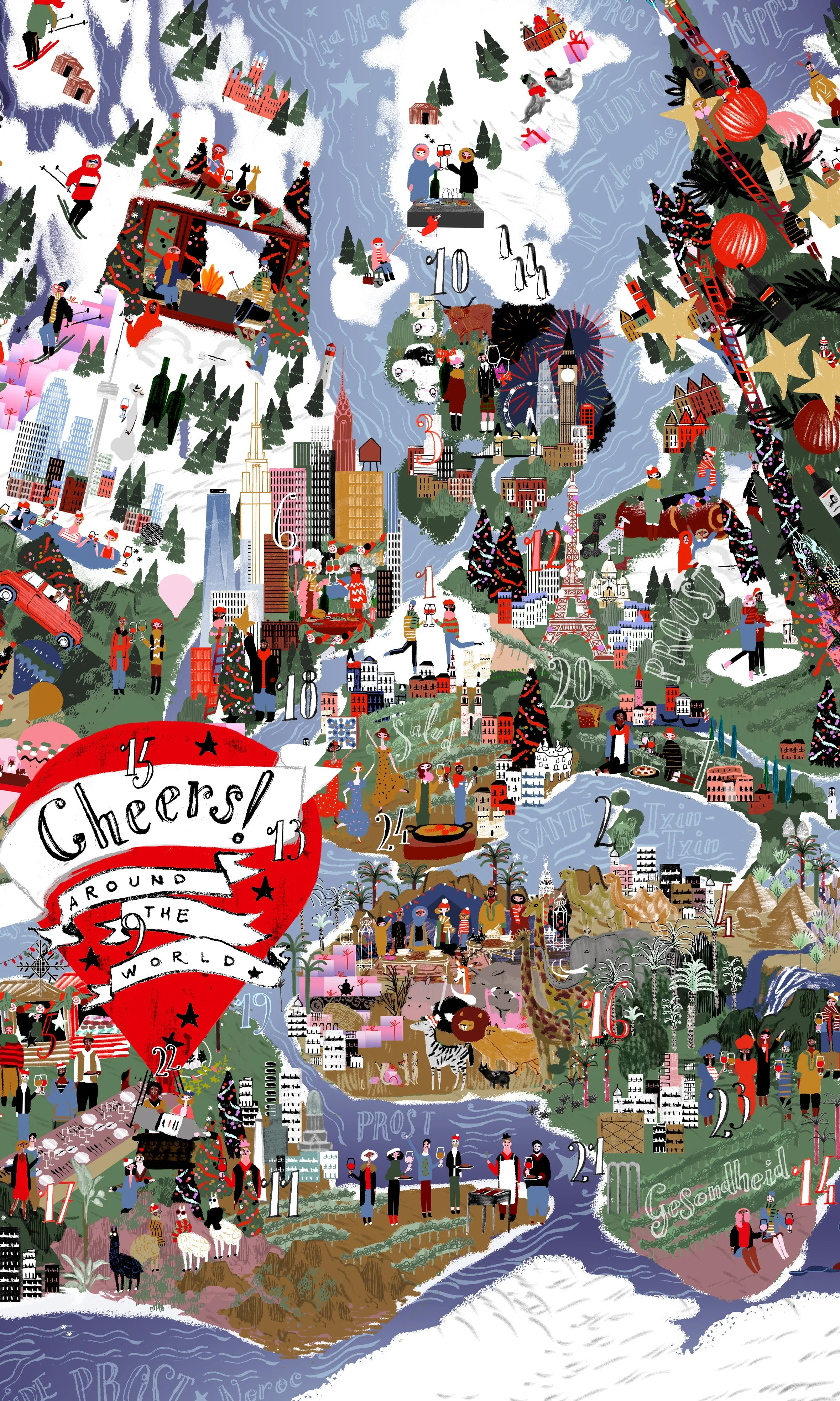 Advent calendar composed of 24 bottles of wine from around the world and a bottle of champagne for Direct Wine. We wrote "Cheers" in 40 different languages and researched how Christmas is celebrated around the world. LINK TO THE PROJECT . Photo: Direct Wine Inc.