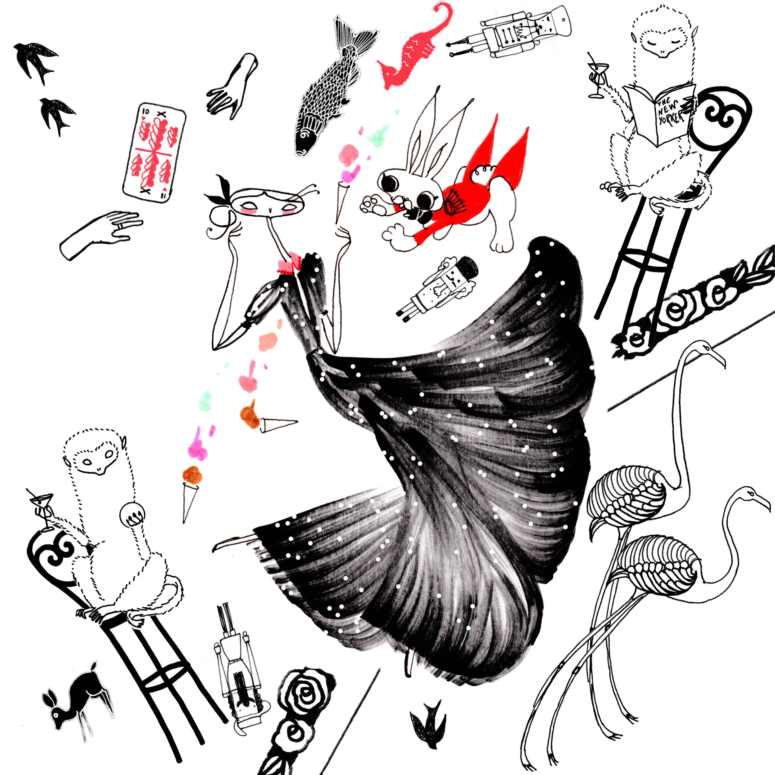 Per a venir a París vaig haver de fer un portfolio de prova. Com el logotip de l'empresa era un conill rosa vaig fer tota una col·lecció de conills, inclosa els estampats i una tote bag amb un autoretrat: la fitxa policial d'un conill.